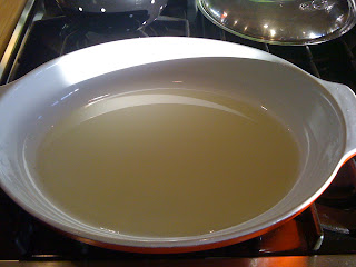 Put 2 Tbsp olive oil in your baking dish and place in your preheated oven to heat the oil.